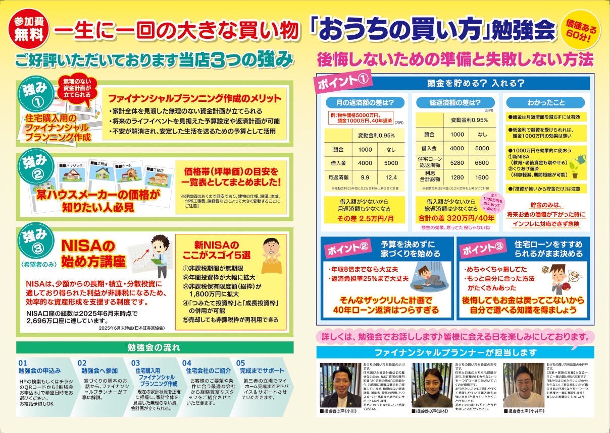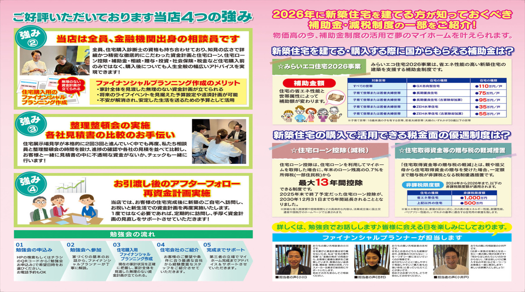 マイホーム購入以外の家計アドバイスを有料としている店舗も一部ございますが、お問い合わせいただきました際にお伝えしていますのでご安心ください。